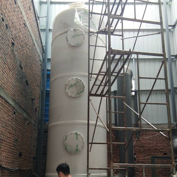 PP喷淋塔具有结构简单、能耗低、净化效率高的特点,能有效去除氯化氢气体(HCl)、氟化氢气体(HF)、氨气(NH3)、硫酸雾(H2SO4)、铬酸雾(CrO3)、氰氢酸气体(HCN)、碱蒸气(NaOH)、硫化氢气体(H2S)、福尔马林(HCHO)等水溶性气体。