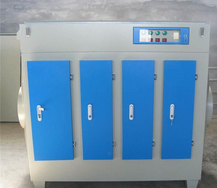 紫外光氧化法是基于催化剂在紫外光线的照射下,以光为能量,将有机物降解为CO2和H2O及其它无毒无害成份。通常采用的催化剂为半导体材料包括TiO2、ZnO、Fe2O3、CdS、WO3等,其中TiO2是目前公认的更佳光催化剂,反应效率更高的是纳米级TiO2催化剂, 紫外光氧化法基本原理是在半导体光催化氧化反应中,通过紫外光直接照射有机废气使大分子有机物废气的化学键断裂,在此基础上,在通过紫外光照射在纳米TiO2催化剂上,纳米TiO2催化剂吸收光能产生电子跃进和空穴跃进,经过进一步的结合产生电子-空穴对,与废气表面吸附的水份(H2O)和氧气(O2)反应生成氧化性很活波的羟基自由基(OH-)和超氧离子自由基(O2-、0-)进一步再与化学键已经断裂的有机废气反应,生成二氧化碳和水等。由于该方法是基于紫外光能和生成的羟基自由基(OH-)和超氧离子自由基(O2-、0-)反应能与有机废气发生反应,因此对于键能较高的有机废气,紫外光氧化法是无能为力的,同时由于部分高分子有机废气每个键能大小不一,因此在紫外光氧化法