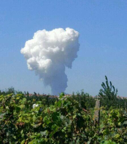 晋州市东里庄镇北寺村附近。爆炸发生后,东里庄及附近的马于镇的居民均听到巨响,并伴随有蘑菇云。 爆炸现场一片狼